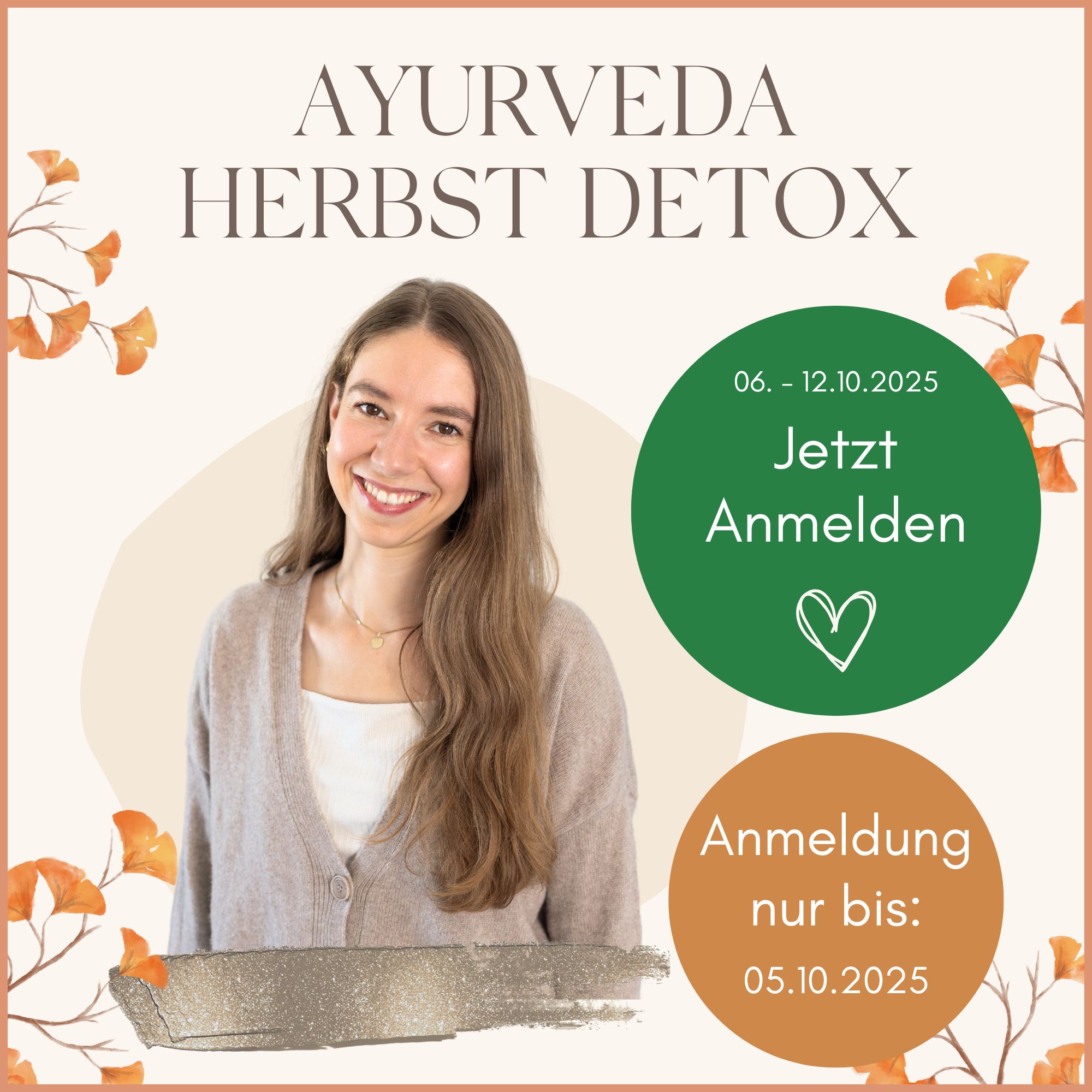 Willkommen bei meinem Kurs „Ayurveda Herbst Detox“ – deine ganzheitliche Entgiftung, die dir mehr Wohlbefinden schenkt.
